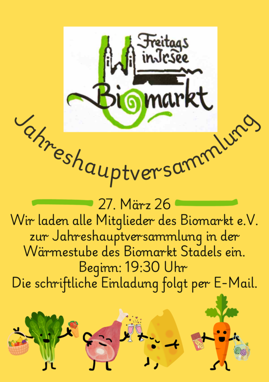 27. März 2026: Jahreshauptversammlung Biomarkt e.V. in der Wärmestube ab 19:30 Uhr